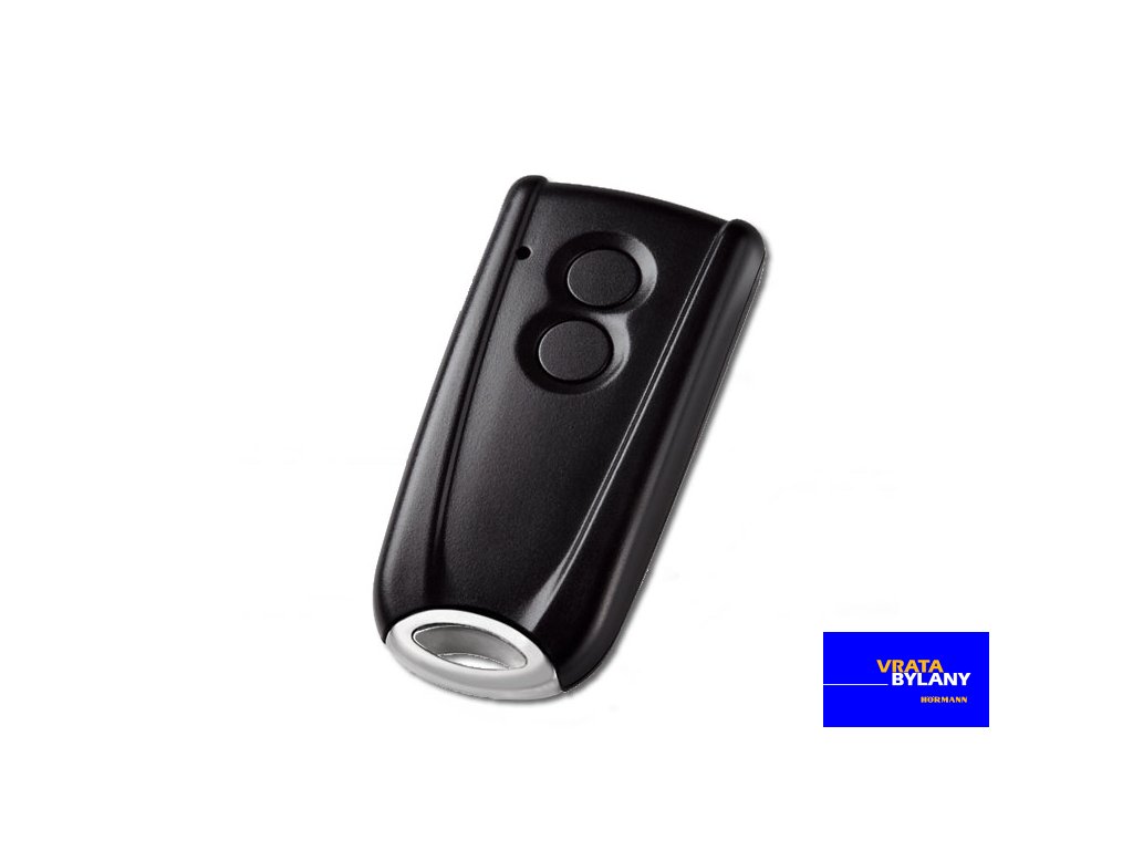 Impulsový, dvoutlačítkový dálkový ovladač Hörmann 433,92 MHz včetně držáku.